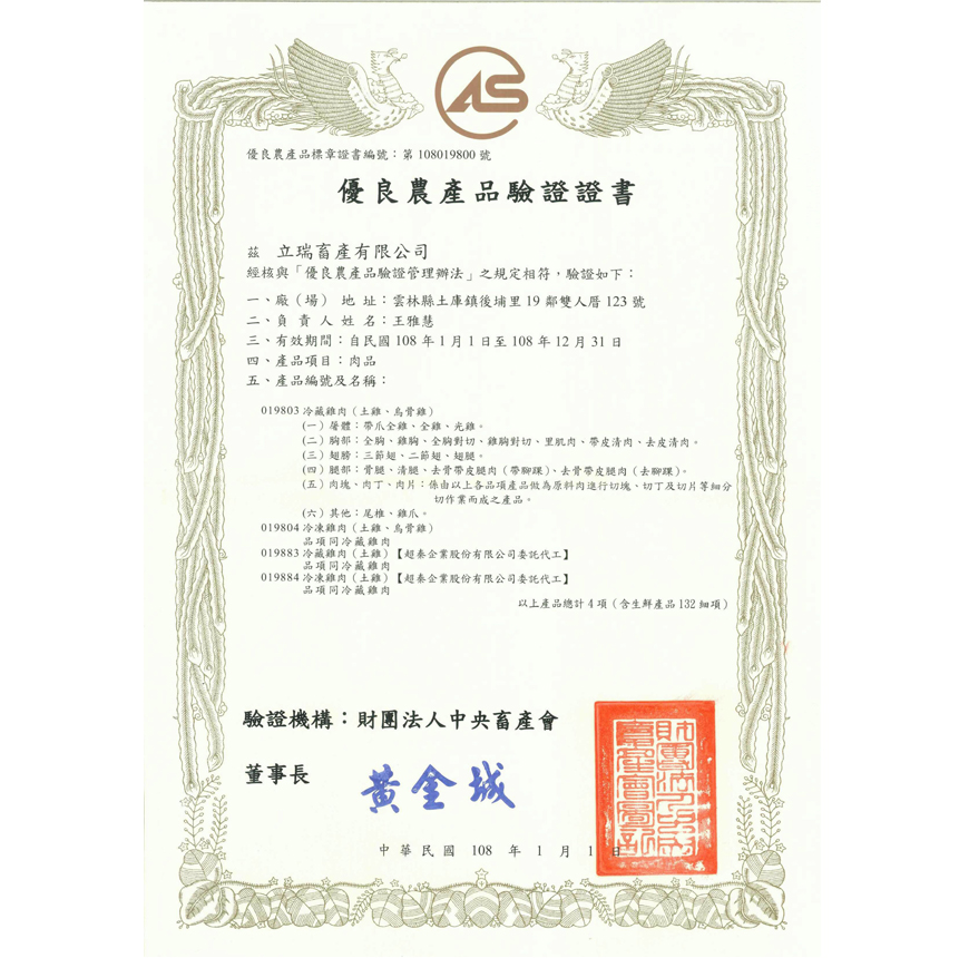 CAS Excellent Agricultural Products Certificate